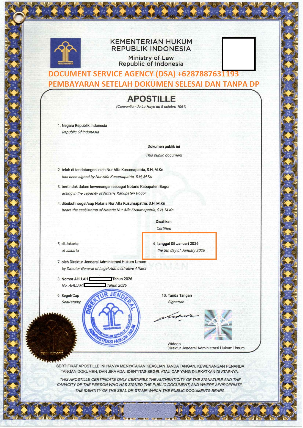 Telp/ Whatsapp : 021 48671259/ +62 878 8763 1193 atau email : documentsserviceagency@gmail.com